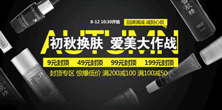 京東商城美妝品牌聯(lián)合大促,不僅有9元封頂、49元封頂、99元封頂、199元封頂專區(qū),還有滿100減50元、滿200減100元專區(qū),相當(dāng)給力!活動(dòng)參與品牌頗多,如蘭蔻、迪奧、阿瑪尼、赫蓮娜、紀(jì)梵希、希思黎、海藍(lán)之謎、雅詩蘭黛等。有興趣的妹紙趕緊去選起來,好價(jià)商品往往手慢無。
