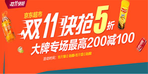 京東商城雙十一快搶對戰(zhàn)5折—京東超市專場,至2013年11月13日,每天10點、12點、14點、16點推出多款商品快搶,大牌分會場的卡夫、百事、德芙、麥斯威爾等品牌更是滿200立減100元。