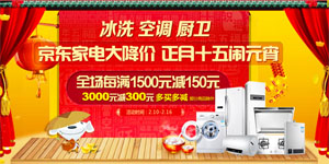 京東商城新推出了大家電正月十五鬧元宵大降價的活動。即日起至2014年02月16日,全場冰洗/空調(diào)/廚衛(wèi)聯(lián)合大降價,指定商品每滿1500元減150元、3000元減300元,多買多減,部分特價商品除外。