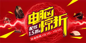 蘇寧易購今日新活動(dòng)——電腦配件專場促銷,即日起至2014年03月09日,全場商品低至1.5折起售,分為驚折區(qū)、勁爆折扣區(qū)和買贈(zèng)專區(qū),還有50元平板專享券、200元筆記本專用券免費(fèi)領(lǐng)取,本專享券除蘋果、IPAD品牌和、團(tuán)購商品外,無門檻使用,下單立減。